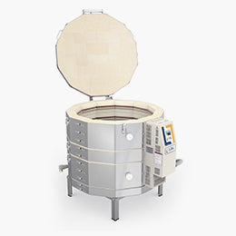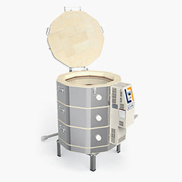 The most popular style of kiln is the traditional top loading kiln. More often than not this style of kiln will work well for you. Front-loading kilns are a great option as well. These kilns load from the front, this method of loading can save your back from having to bend over to load work like a top loader. Conversely, they can be more difficult to load in some situations as they require quite a bit of strength to load larger items where the weight of the ware must be held straight out in front of the body to load. Front loaders are more expensive to purchase and maintain. It is easier to see the full load of ware in a front loader as you can see the ware stack from the side. Front loaders cannot go up or down steps and are large and difficult to move and install. All front loading kilns require some sort of pallet jack or pallet truck high lift to install. They will make sense for some, but not for others.