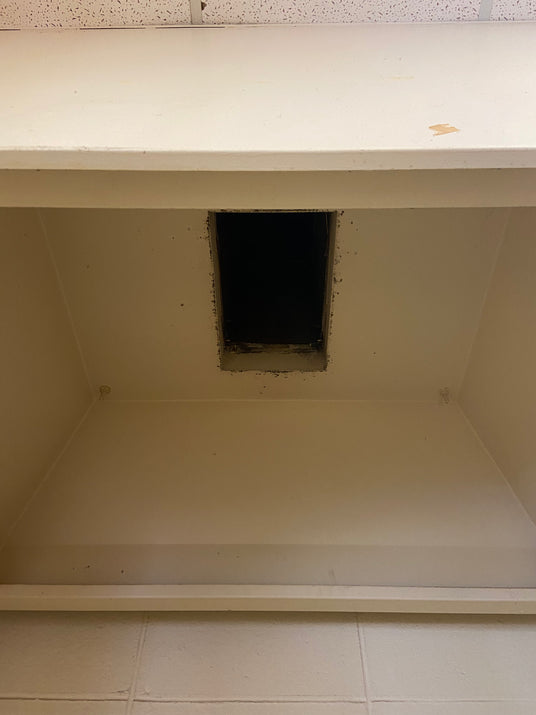 In addition to downdraft venting with the L&L Vent-Sure Downdraft Vent System, the kiln room should have some sort of ambient vent system in place to move air from the kiln room. A ceiling or wall mounted vent motor with a high CFM rating is recommended to provide an oxygen rich environment in the kiln room. Installing a vent grate at the bottom of the kiln room door will allow air to be drawn from the classroom into the kiln room.